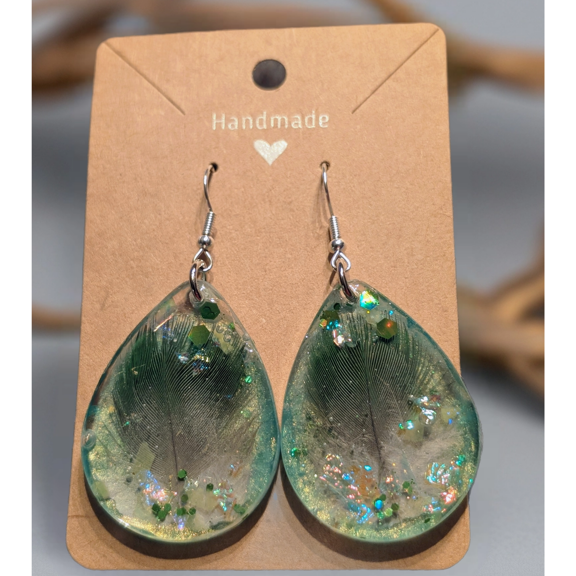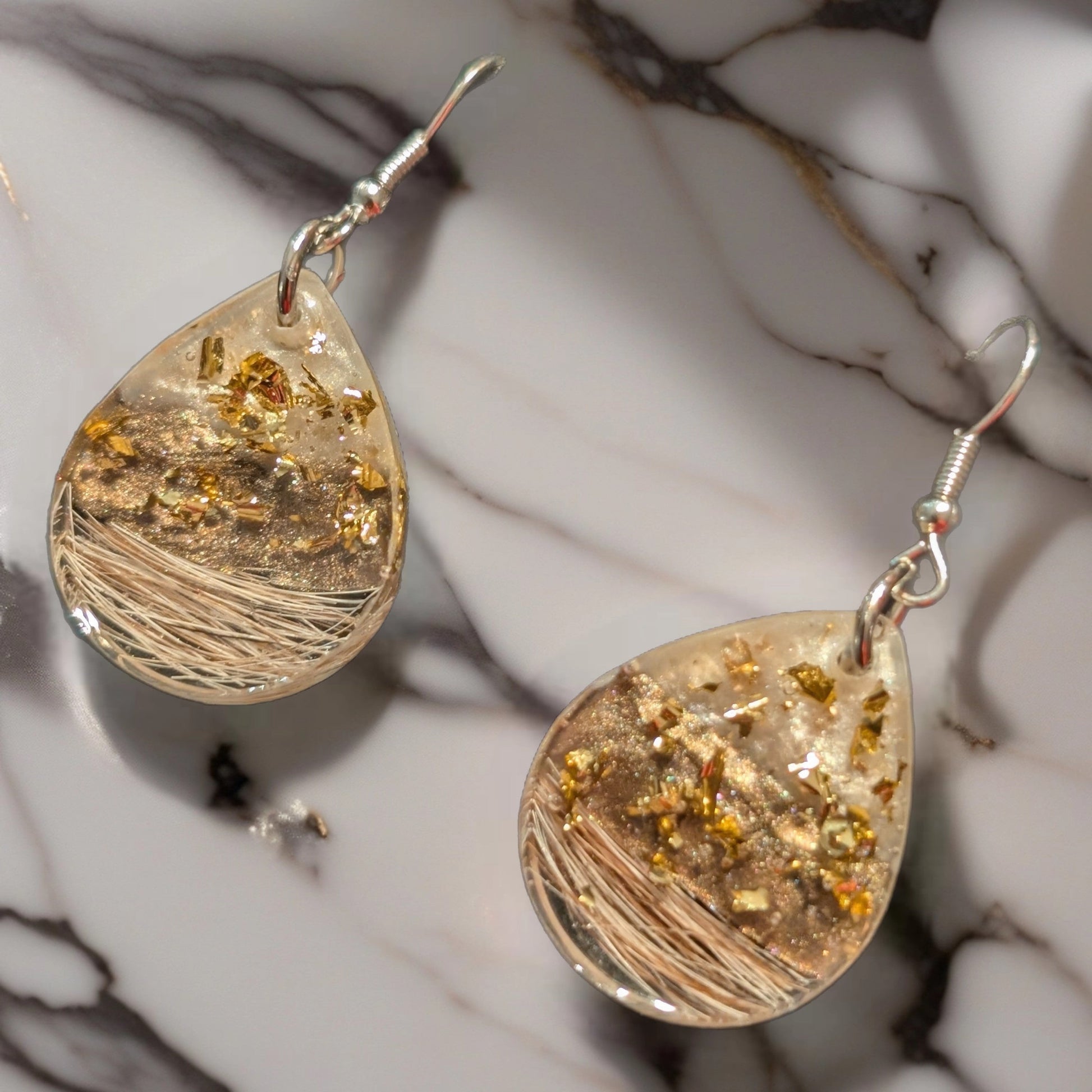 UV Harz Ohrringe mit Vogelfeder oder Schweifhaar/Fell – Gedenkschmuck